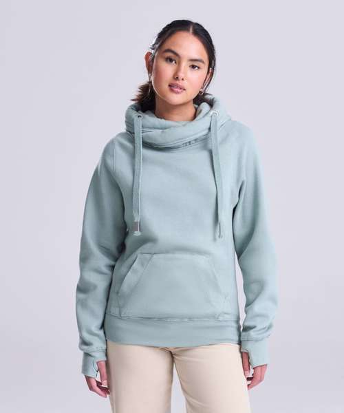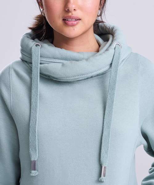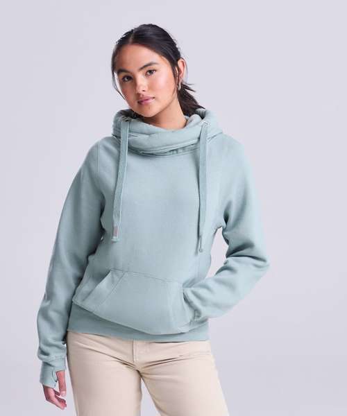 Made with cotton faced fabric which is ideal for decoration, this modern and stylish high necked cross over hooded top features heavy weight fabric to keep you warm on the move.