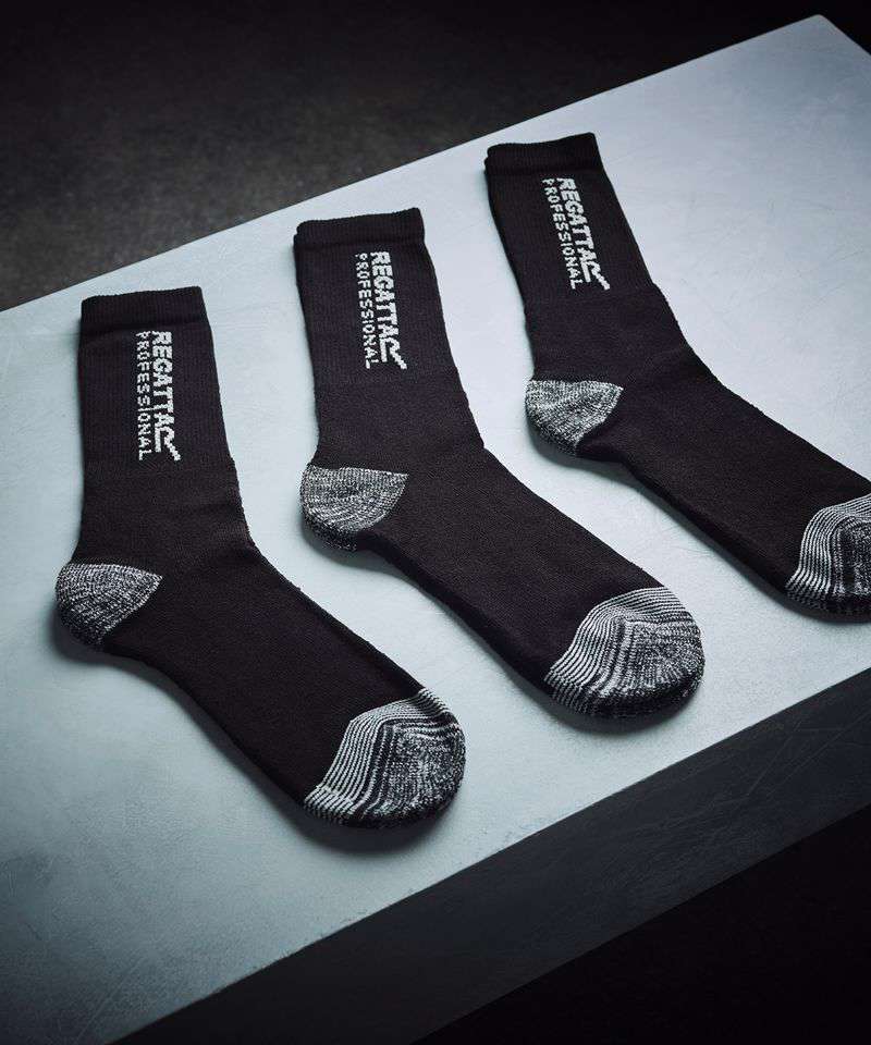 These men's work socks combine cotton, polyester and elastane for the ultimate combination of comfort, durability and stretch. These socks feature a cushioned loop stitch to the heel and toe - perfect for when you're on your feet all day. The ribbed ankle cuff provides extra support, and a flat toe seam prevents any discomfort.